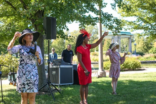 Kris Hogan Bola Taiwo Akande Co Chair Forest Park Forever 31st Hat Luncheon At World S Fair Pavilion Pagoda Circle Forest Park Forever